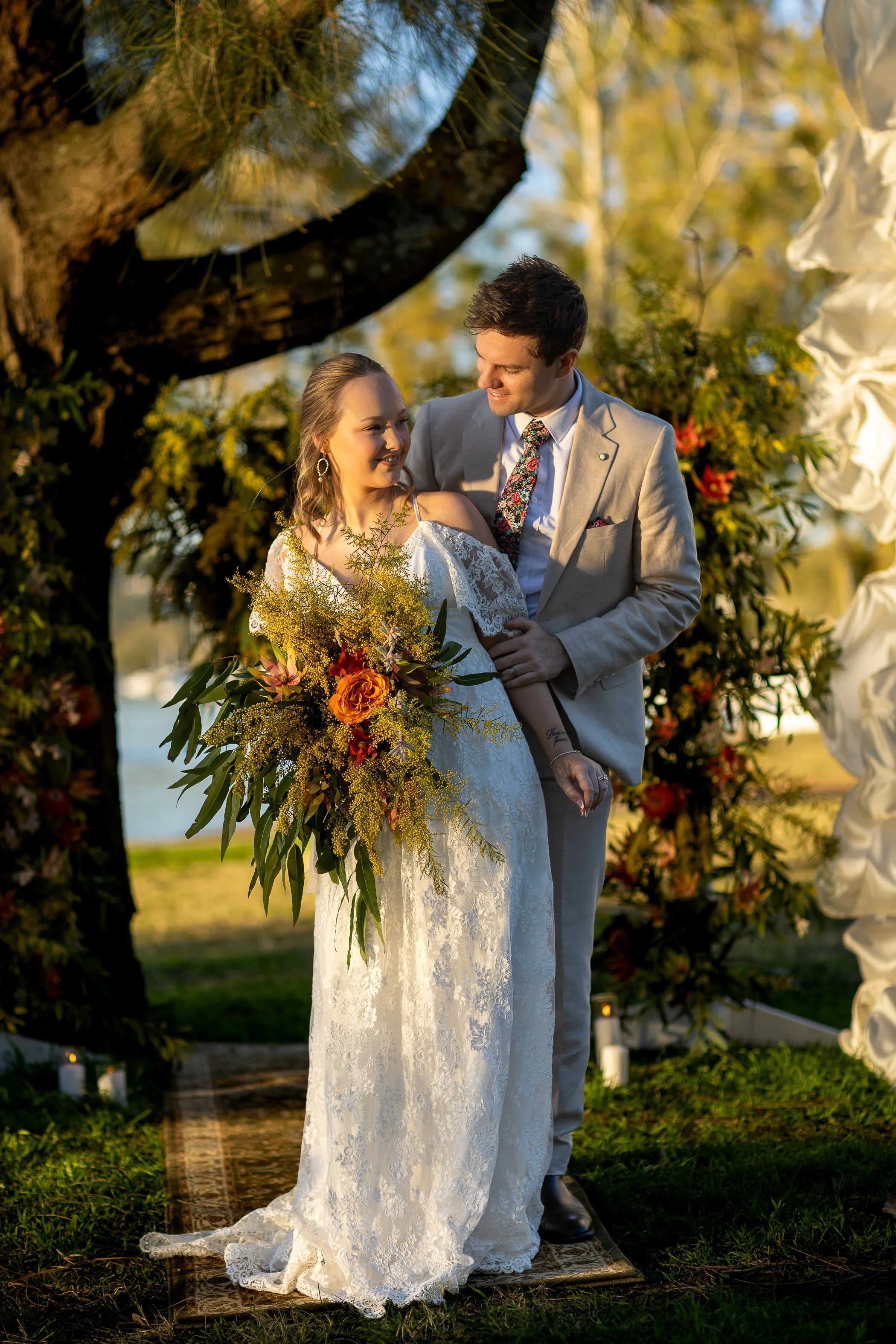 Our Marry & Cruise package brings together a heartfelt legal ceremony by Sweet Basil Celebrant, breathtaking waterside styling, and a private cruise aboard Cruise N Snooze on Lake Macquarie. Whether you're dreaming of an intimate elopement or a relaxed micro wedding, this experience is designed to be effortlessly beautiful.